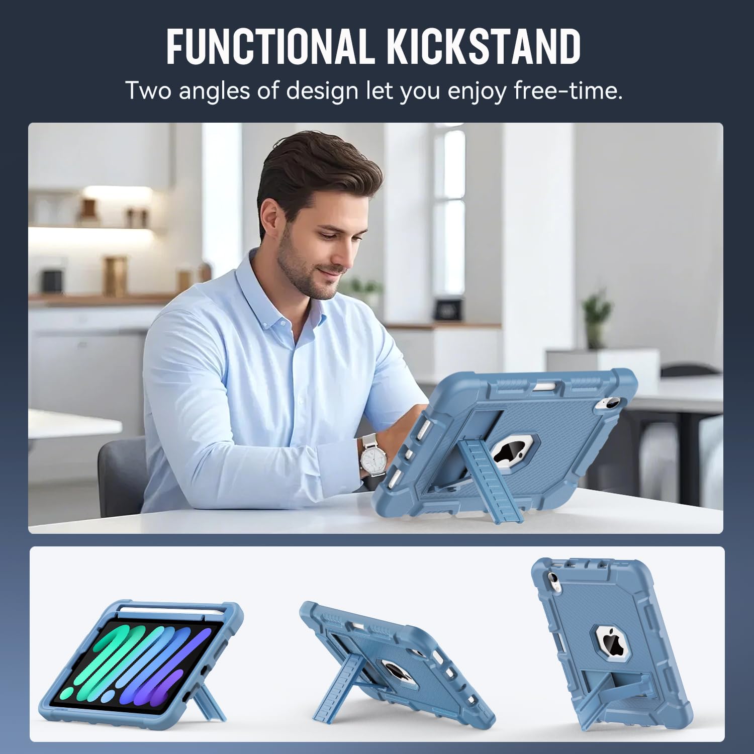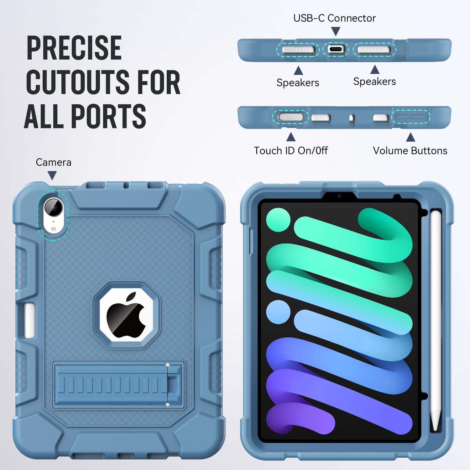 Case for iPad mini 7 A17 Pro 2024 / iPad mini 6 2021 8.3 Inch, Heavy Duty Shockproof Rugged Protective Case for iPad mini 7th/6th Generation 8.3″, Light Blue