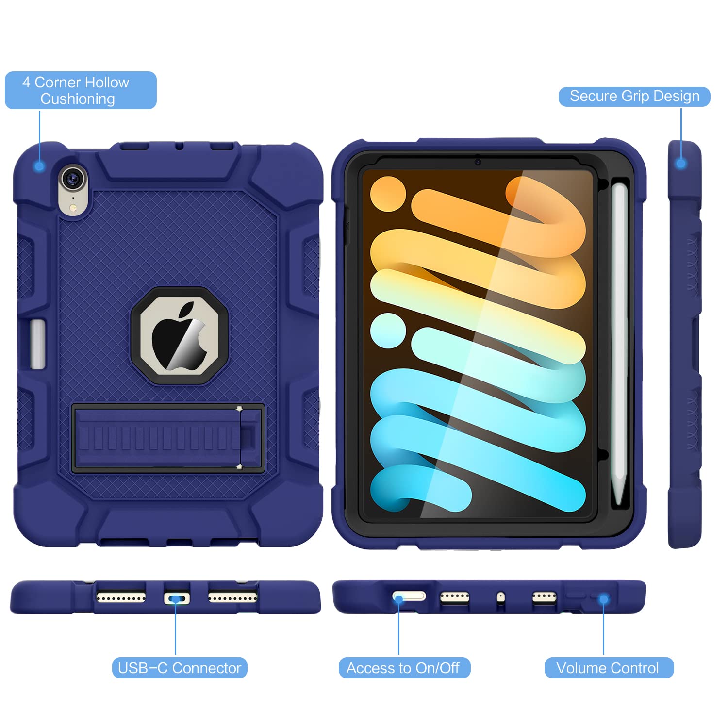 Case for iPad Mini 7 A17 Pro 2024 / iPad Mini 6 2021 8.3 Inch, Heavy Duty Shockproof Rugged Protective Case for iPad Mini 7th/6th Generation 8.3″, Navy Blue